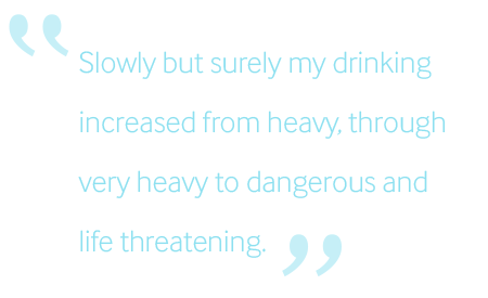 Then my relationships started to breakdown, so I found myself alone, drinking at lunchtimes with whoever I could find to go with and in the evening alone at home. Slowly but surely my drinking increased from heavy, through very heavy to dangerous and life threatening.