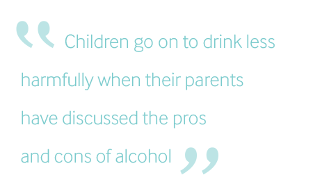 Instead, studies have shown that where parents actively discuss the pros and cons of alcohol and are open with their children about the effects of drinking and their concerns, there is less likelihood of children drinking riskily later in life.
